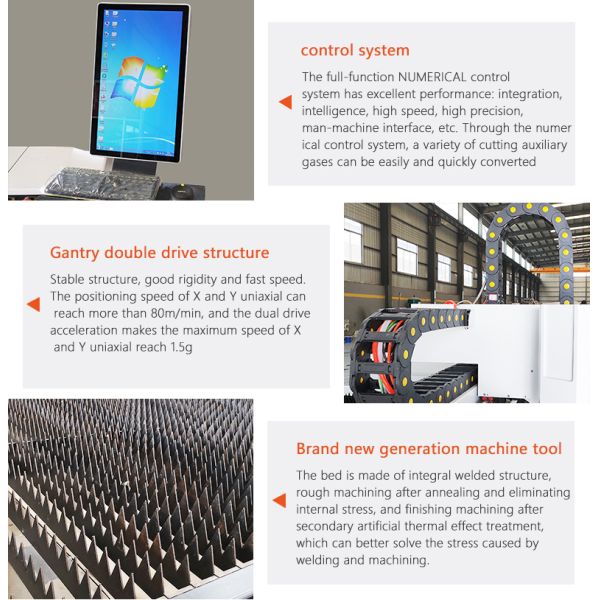 The fiber laser cutting machine innovates the gravity encircling ultra-high power special hollow bed. There is no square connection in the middle, and the cutting area is not covered,